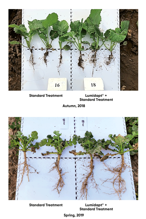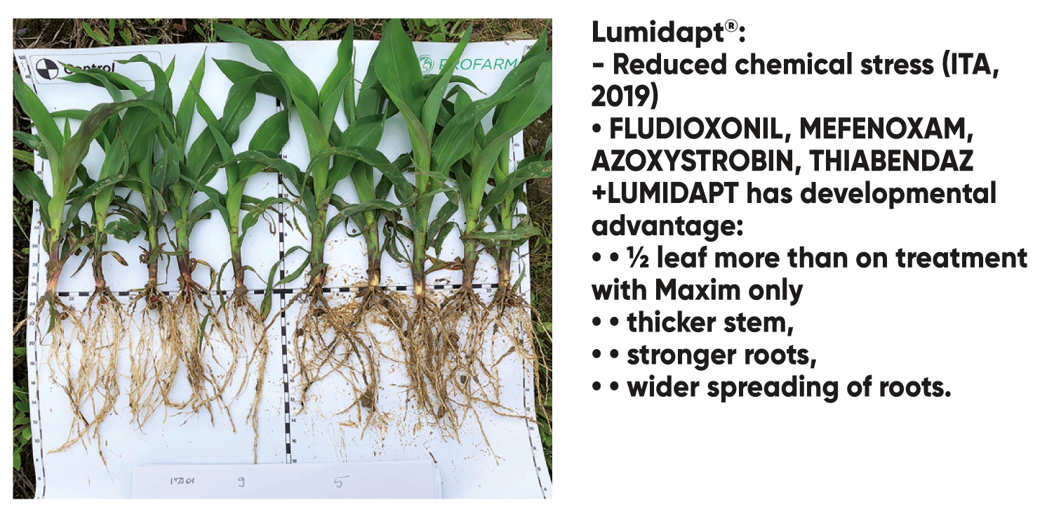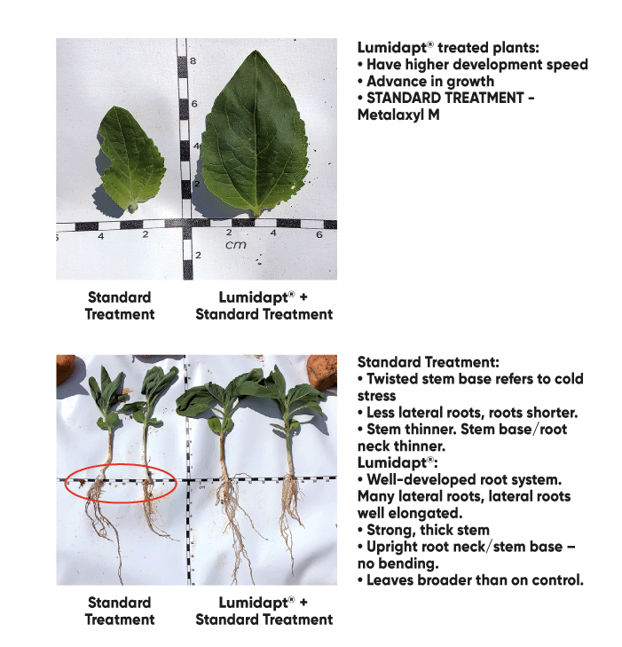 Lumidapt™ penetrates seed's coating and is absorbed by cells. Multiple impact on cell level leads to enhanced germination. Absorption of Lumidapt leads to increased rate of nutrient and water absorption by the seed.